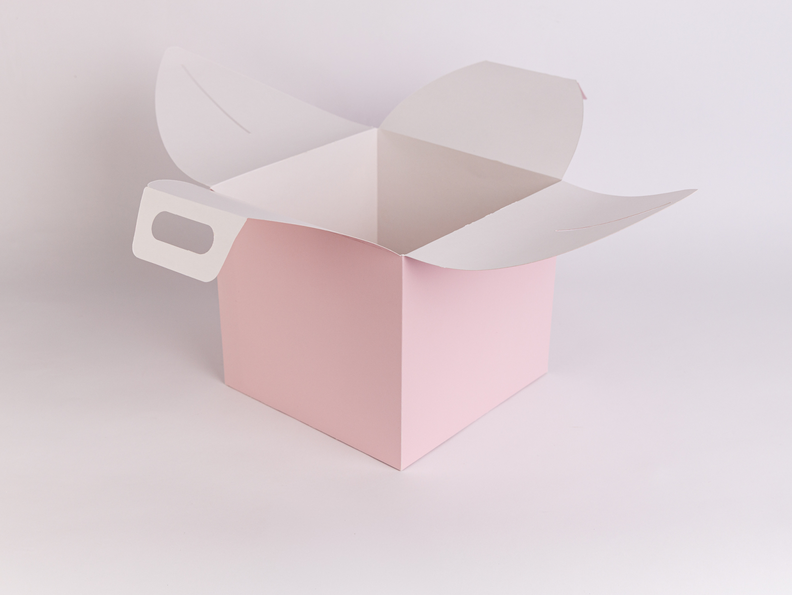 Cutie pentru pannetone sau tort, 200x200x180mm, carton 300g, ROZ PASTEL plastifiat exterior LUCIOS, cu maner, livrate plate, cu autoformare, set 5 buc. Alte dimensiuni sau personalizare la cerere.